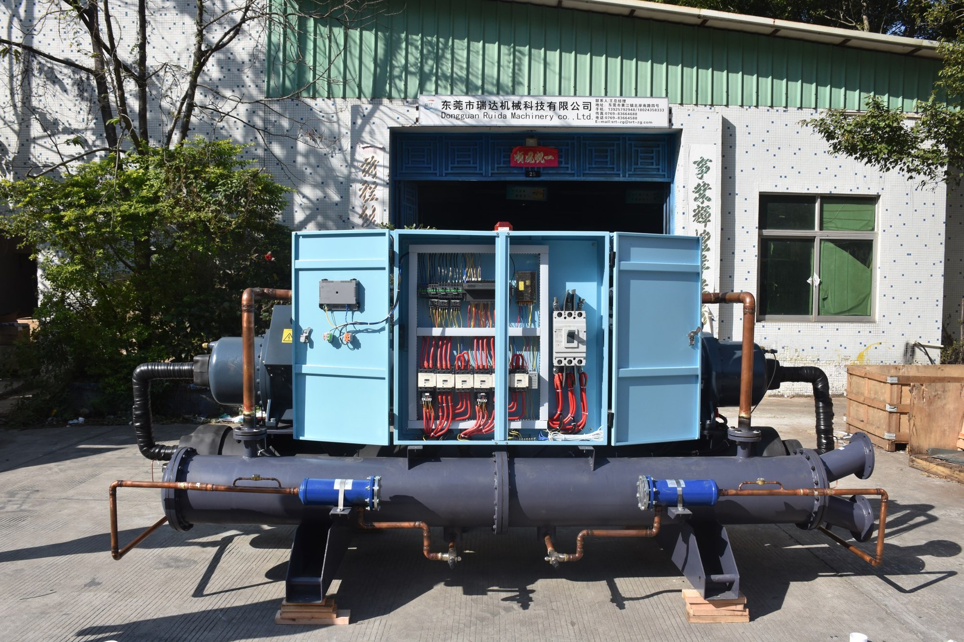 1.壓縮機和高效殼管式冷凝器、蒸發(fā)器組合、超強制冷、寧靜省點。